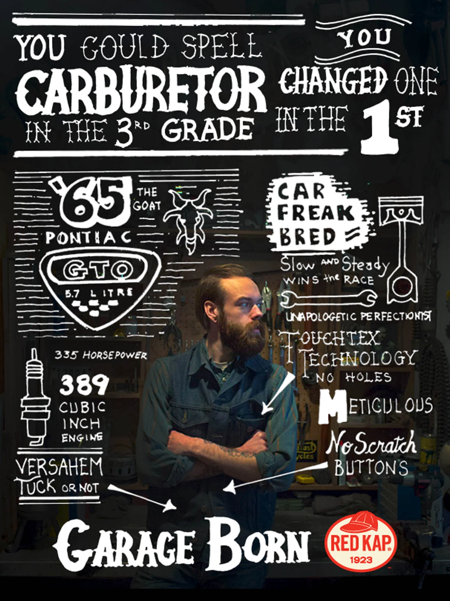 As the lead creative, Red Kap wanted to refocus their efforts on the people that were wearing their products and tell more of their stories. A redesign of their website, custom icons and advertising campaign was created that focused on mechanics and their personality and history who were "Garage Born".